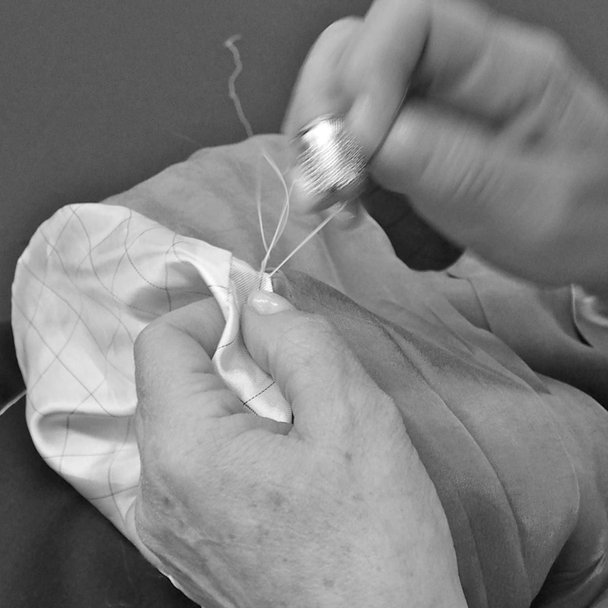 Die Herstellung einer Tailored Suit Jacke dauert 345 Minuten, doppelt so lange wie die Herstellung eines Standardmodells. Die edlen Stoffe, der Canvas auf der Innenseite, die 130 handgenähten Stiche am Armausschnitt und das sorgfältige Bügeln machen sie so einzigartig, da sie sich auf natürliche Weise an die vielen unterschiedlichen weiblichen Körperformen anpasst.