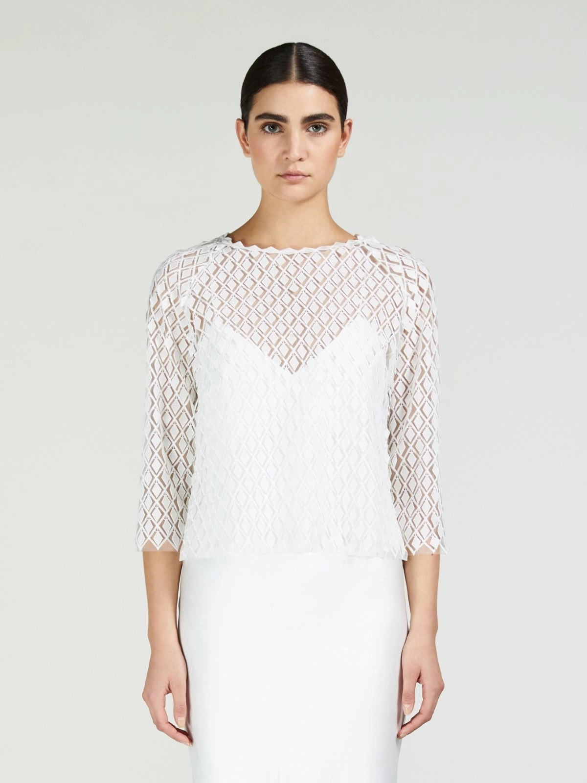 •  Tüllbluse mit Rauten-Disegno-Stickerei